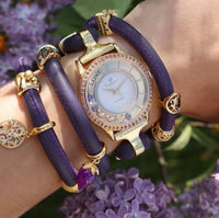 Man kan isætte ekstra diamanter under skiven på sit ur, man kan sætte charms på sin læder rem, ja enddog en ny krans fyldt med smukke ægte stene. Kort sagt, du kan lave dit helt unikke ur med Christina Collect.