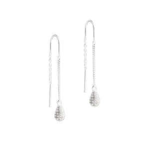 Øretråde med delikate pave-dråber, prydet med klare zirkonia, som giver et subtilt og strålende udtryk.