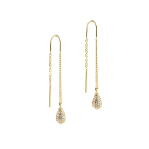 Øretråde med delikate pave-dråber, prydet med klare zirkonia, som giver et subtilt og strålende udtryk.