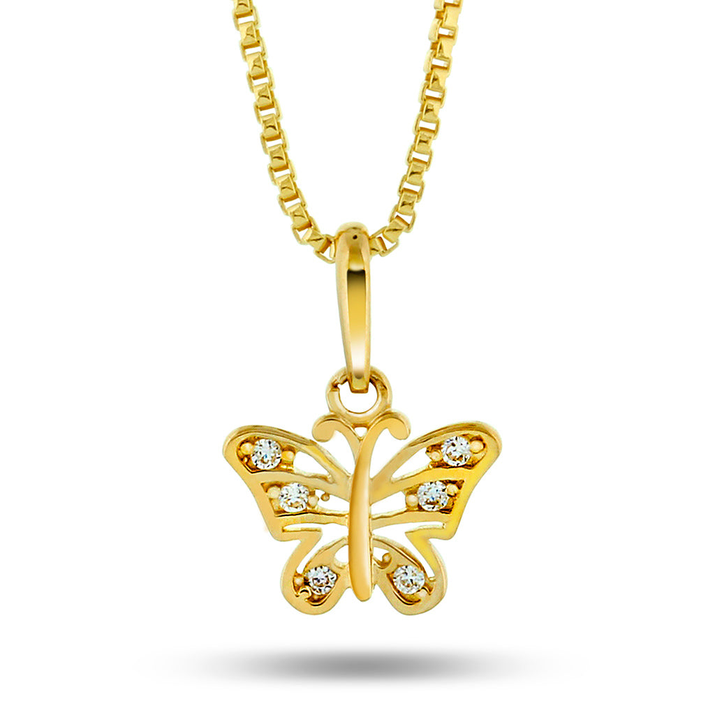 Smukt sommerfugl vedhæng i guld til den lille prinsesse