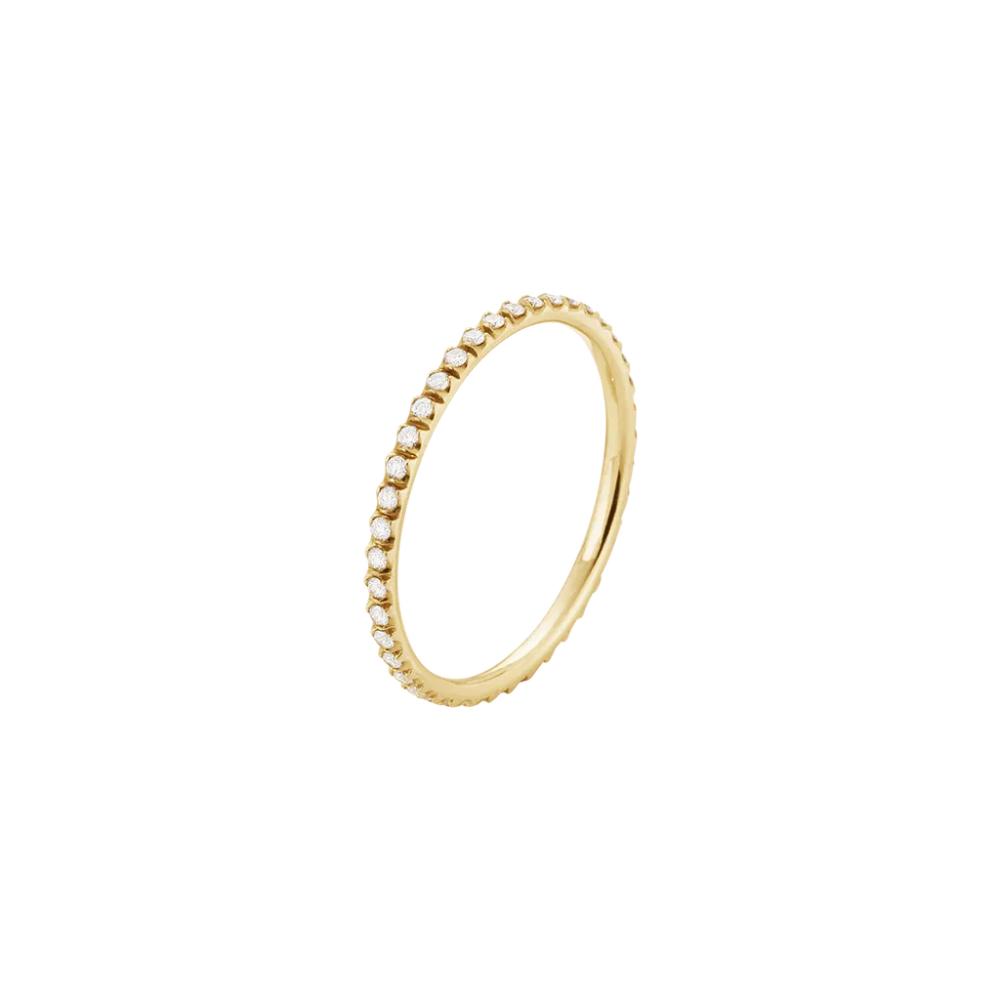 De indlagte brillantslebne diamanter i denne betagende ring i 18 kt. massivt guld omkranser fingeren på smukkeste vis. Georg Jensens særlige signaturindfatning får diamanterne i dette smykke til at glitre magisk, så det sprudler af liv og løfter ethvert outfit til nye højder.