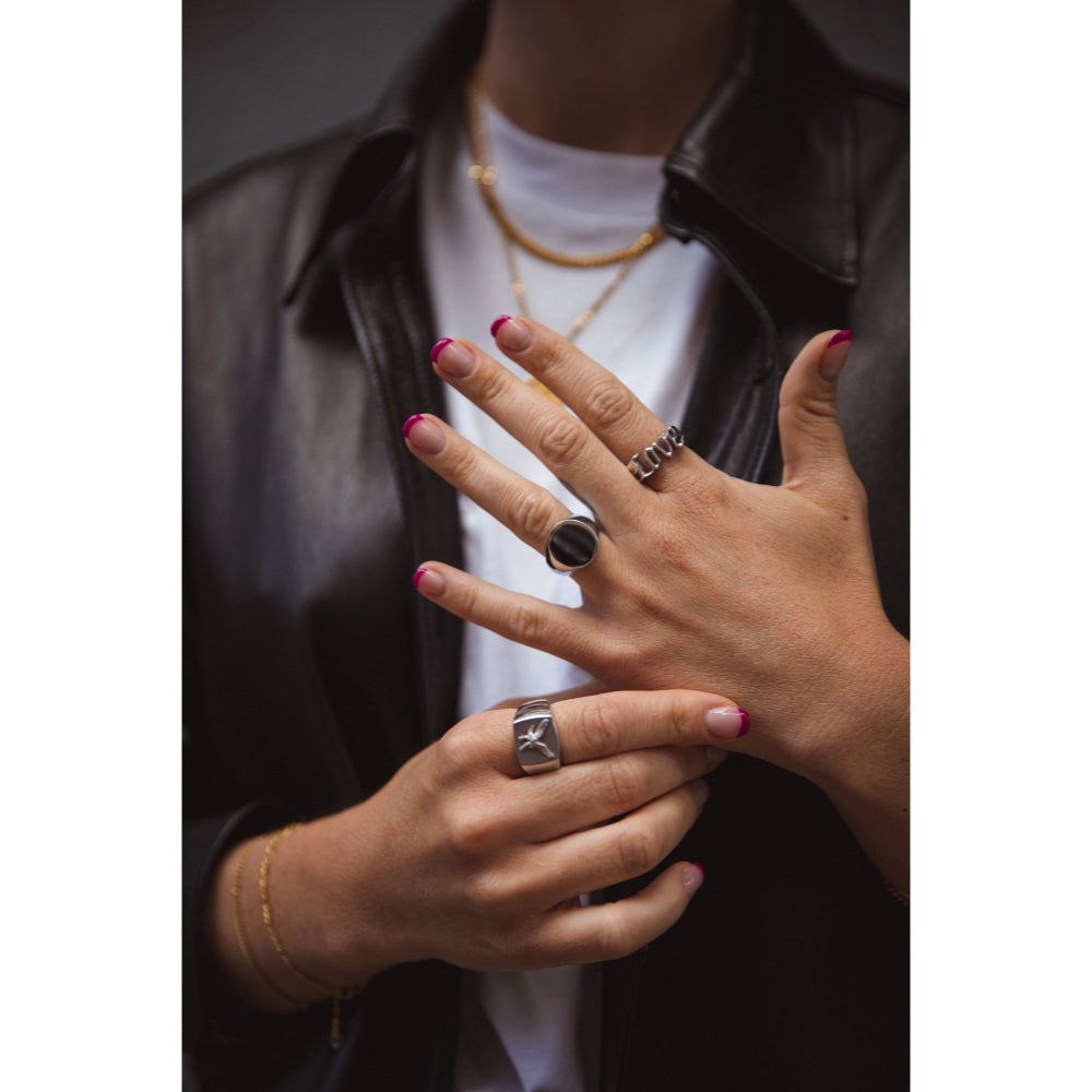 IX Studios signet ring, er enkelt og stilrent. Ringen kan graveres på pladen, ved at få graveret ringen bliver den mere personlige