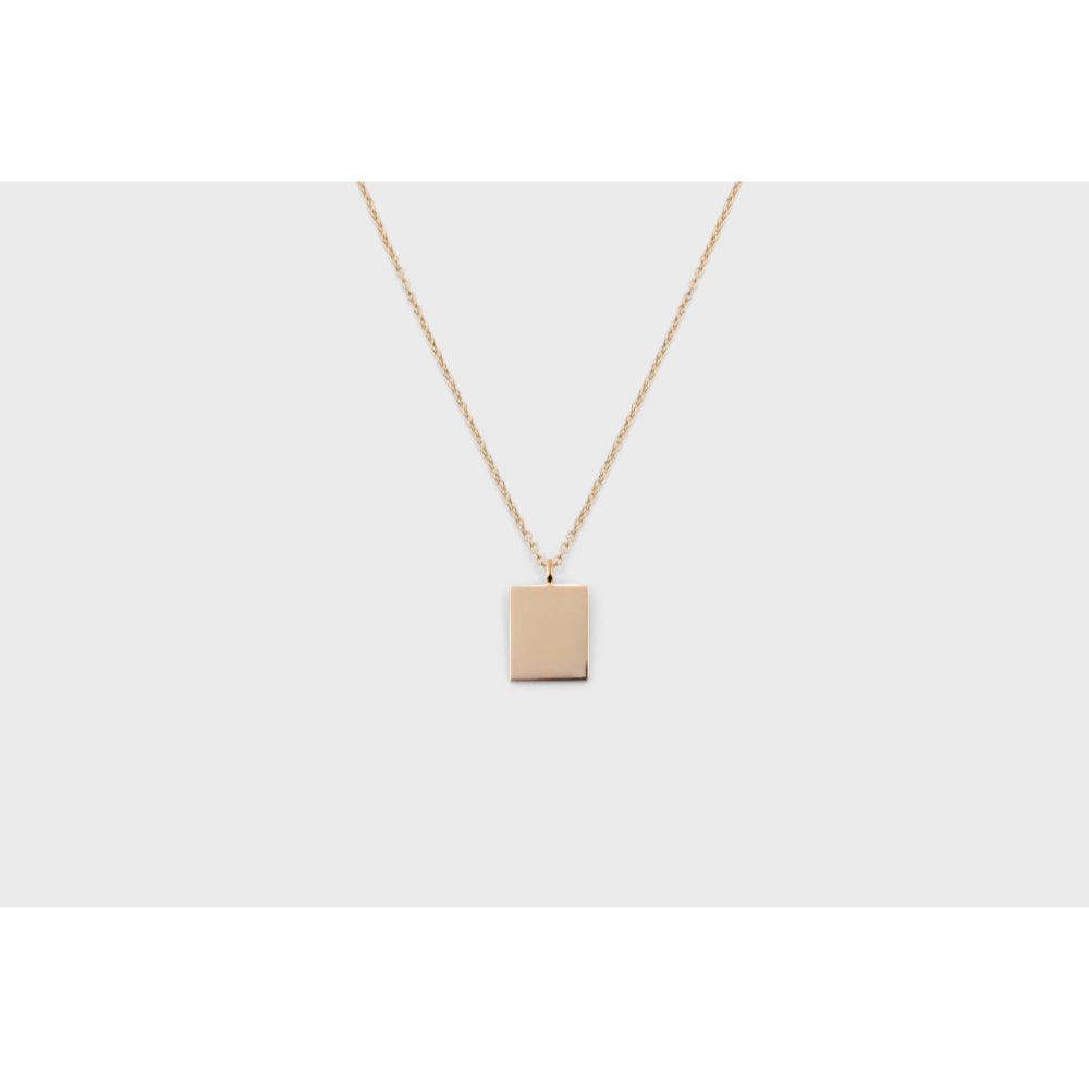 IX Studios halskæde med firkantet vedhæng, kæden er enkelt og klassisk. Vedhænget gøres personligt ved at få det graveres. Kæden kan bæres alene for et enkelt look, eller kombinere den med andre halskæder for et lidt mere råt look.