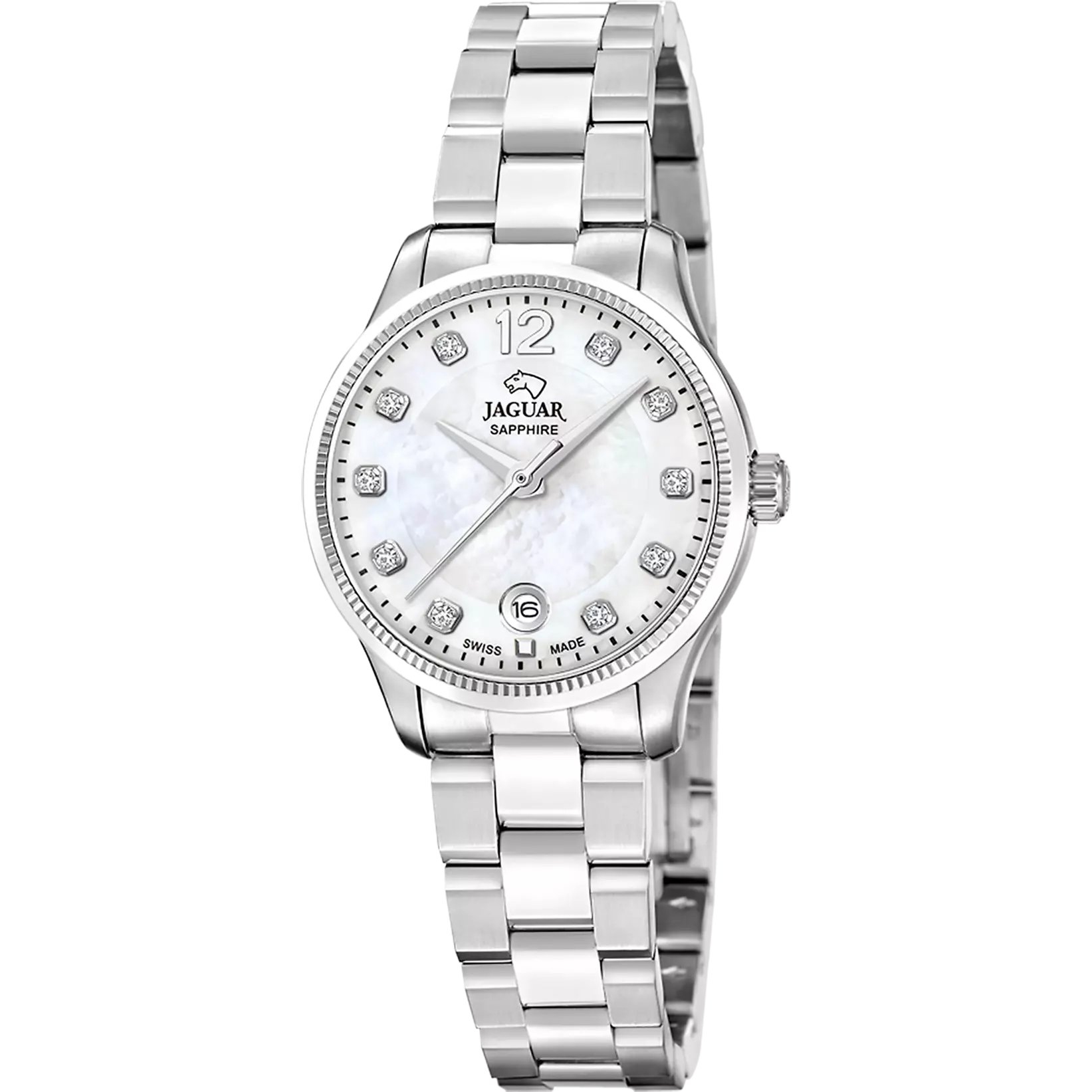 Jaguar D. Acamar Classic J1045/1 er et elegant og tidløst dameur med Swiss Made quartzværk og safirglas. Den hvide urskive kombineret med stållænke giver uret et stilfuldt udtryk, velegnet til både hverdag og festlige lejligheder.
