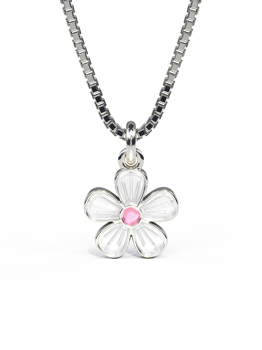 Flot sølv blomster vedhæng fra Pia & Per med hvid emalje. Den perfekte gave til prinsessen eller barnedåben.