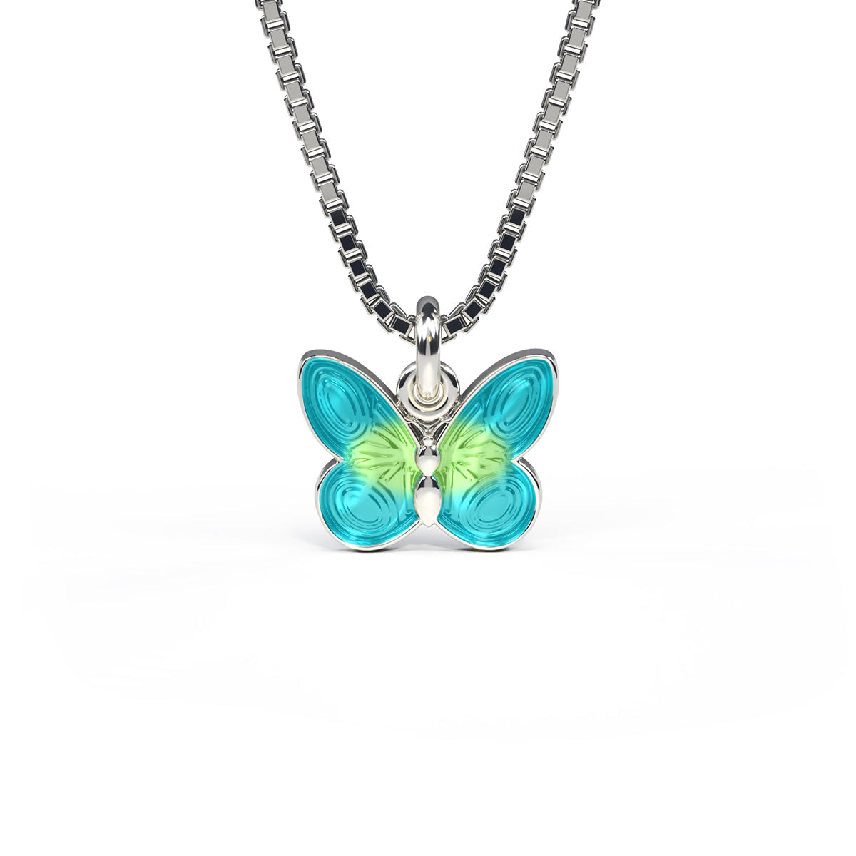 Flot sølv sommerfugl vedhæng fra Pia & Per med turkis emalje. Den perfekte gave til prinsessen eller barnedåben.