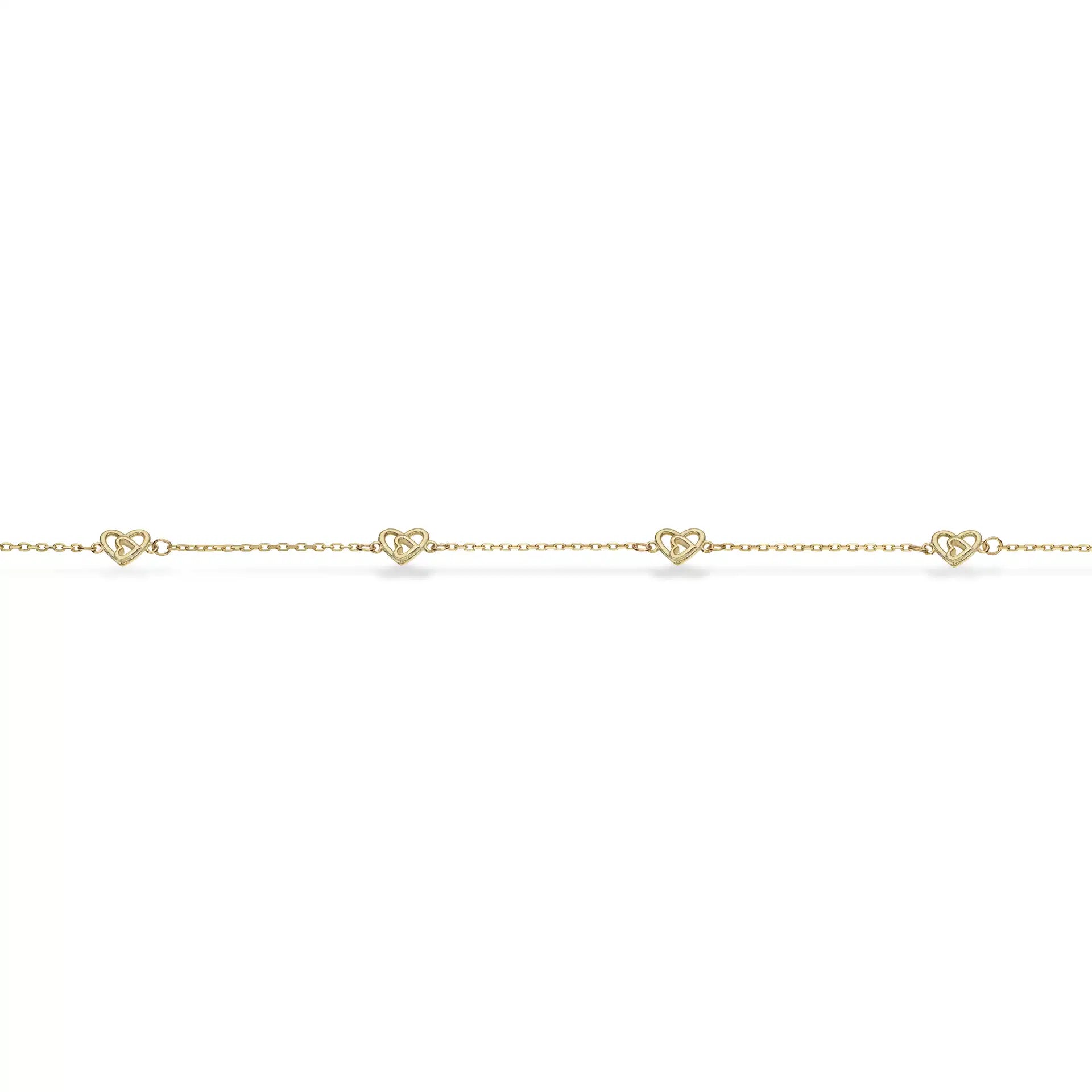 Delikat armbånd i 8 karat guld med et fint hjertevedhæng. Justerbart fra 17 til 19 cm, hvilket sikrer en perfekt pasform. Et elegant og tidløst smykke, der tilføjer et romantisk touch til ethvert look.