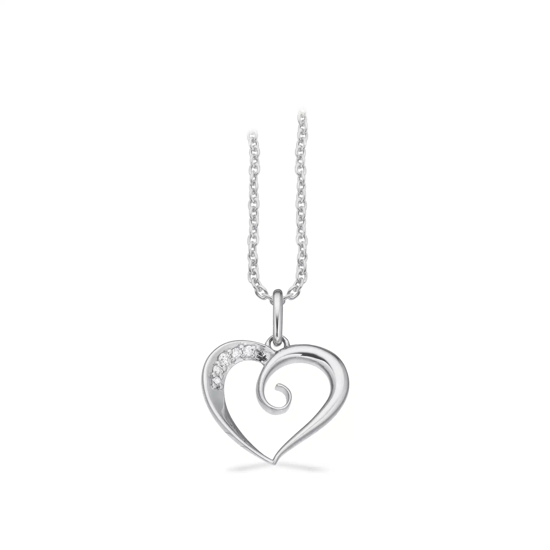 Smukt hjertevedhæng med diamant på 0,025 ct, H-W/SI kvalitet, udført i 8 karat guld og leveret med en elegant sølvkæde. Et tidløst og romantisk smykke.