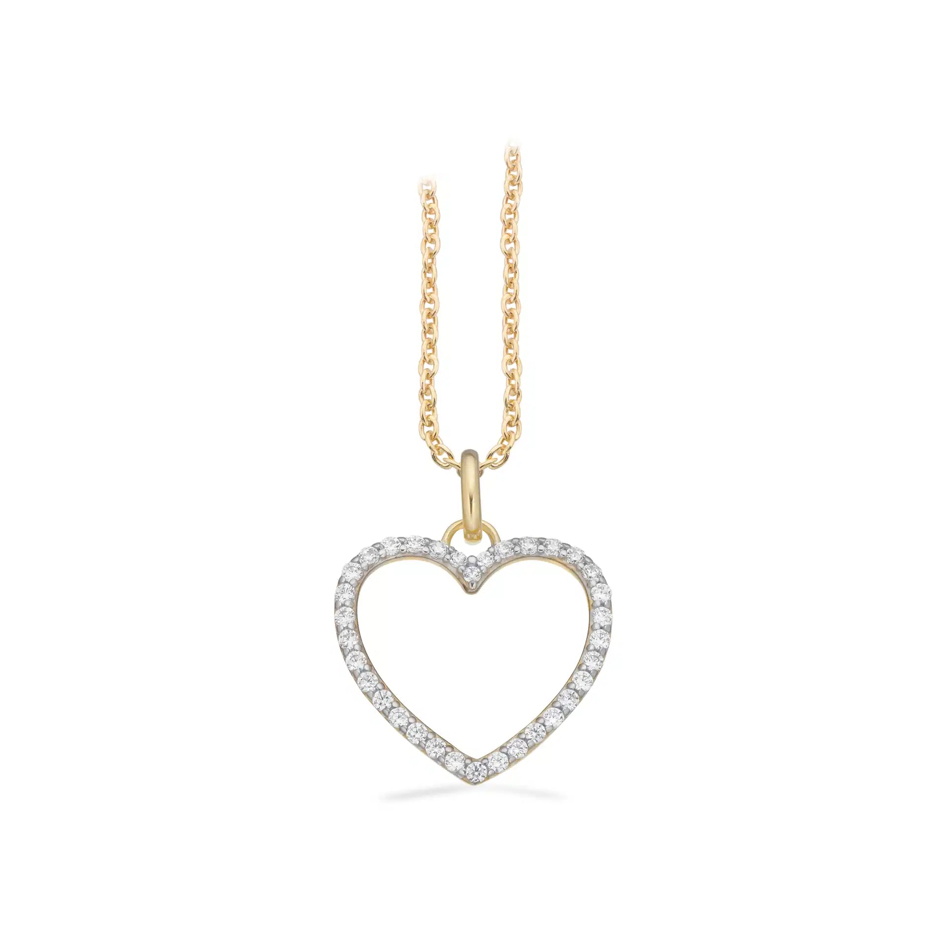 Et klassisk og elegant hjertevedhæng i 8 karat guld, smukt udsmykket med skinnende zirkonia-sten. Vedhænget leveres med en fin sølvkæde – et romantisk og stilfuldt smykke, der passer til enhver anledning.