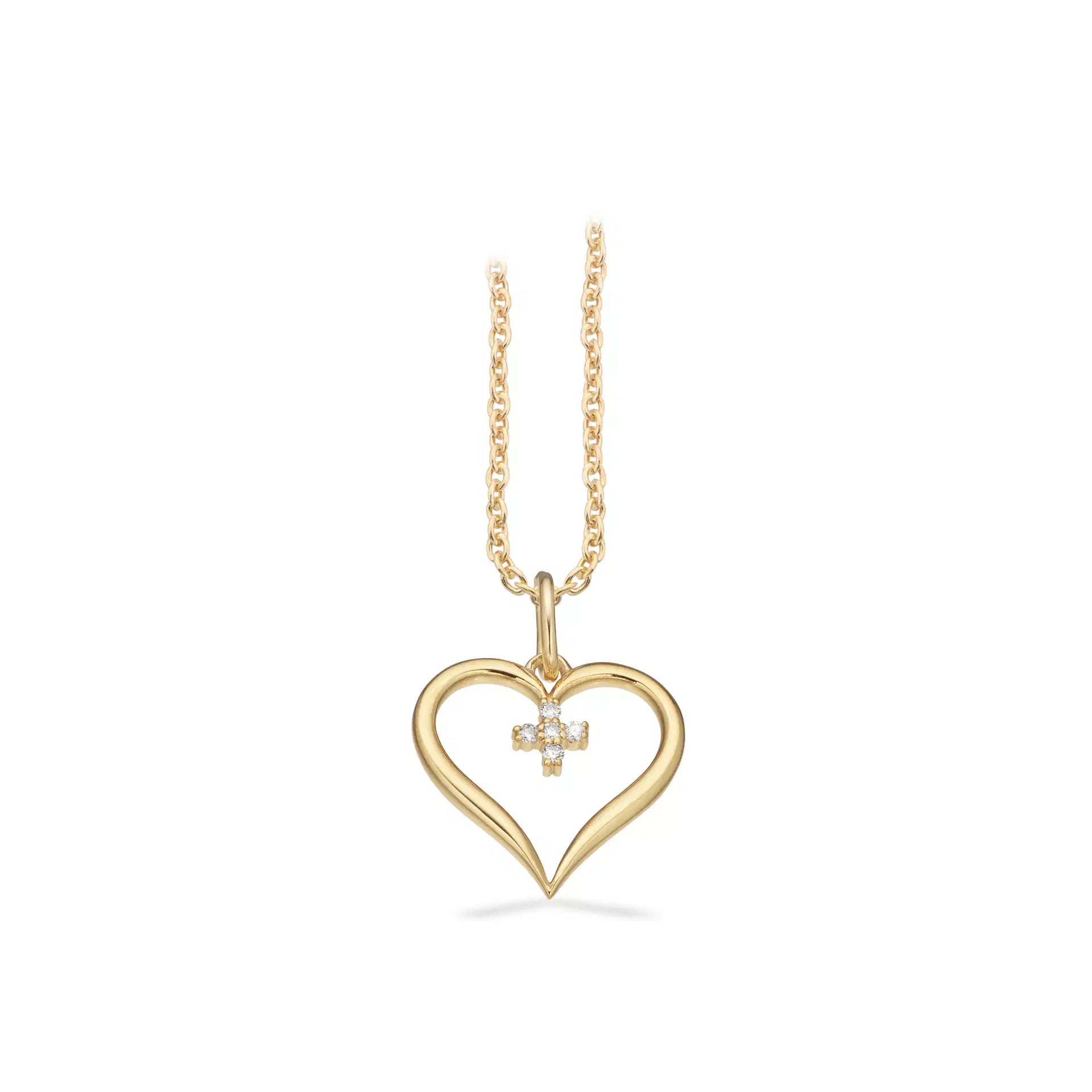 Elegant hjertevedhæng med diamant på 0,025 ct, H-W/SI kvalitet, udført i 8 karat guld og leveret med en fin sølvkæde. Et tidløst og romantisk smykke.