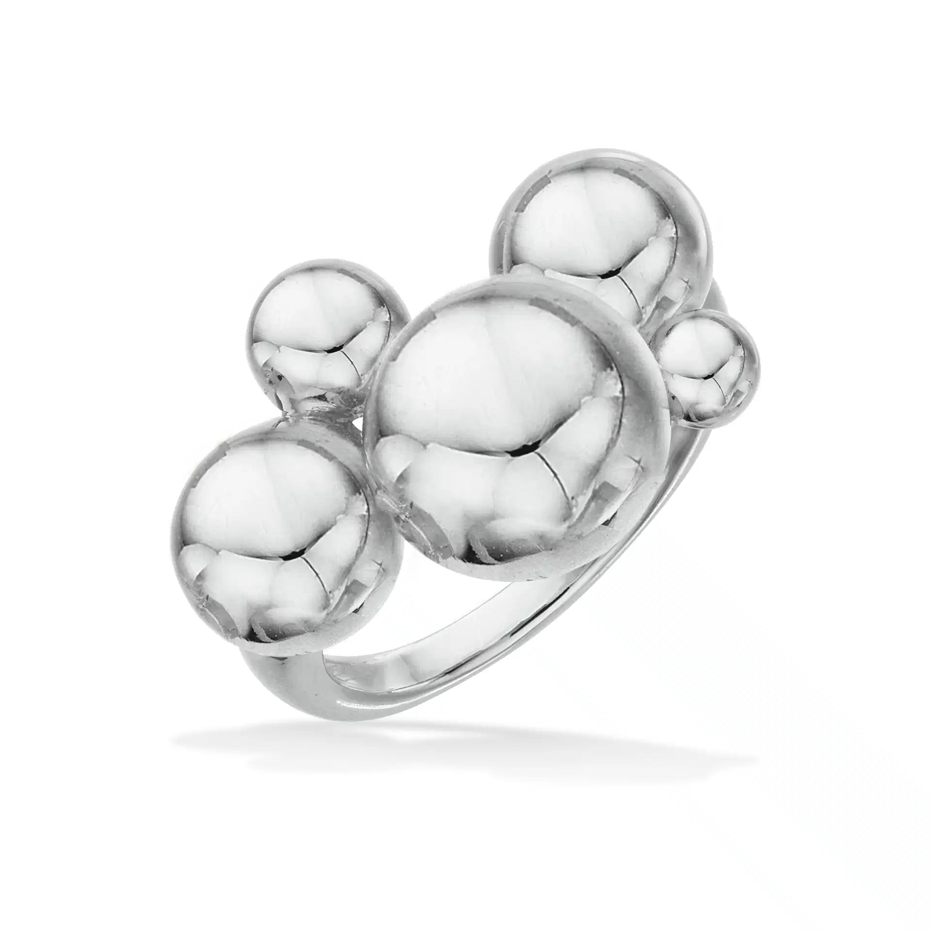 En smuk og enkel ring i rhodineret sølv med elegante kugledetaljer, der giver et moderne og stilrent look. Perfekt som et minimalistisk smykke til både hverdag og fest.