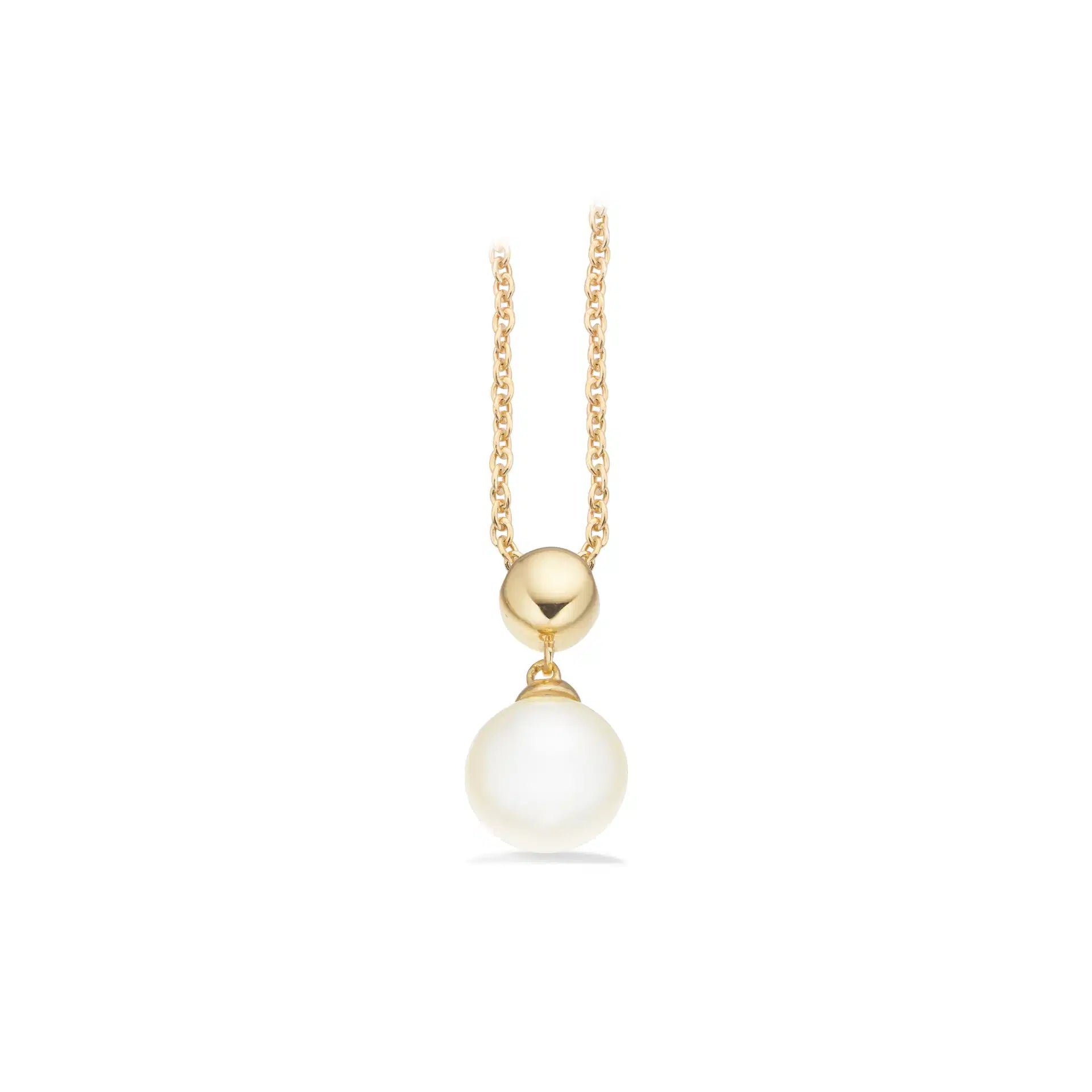Elegant vedhæng med ferskvandsperle, udført i 8 karat guld og leveret med en fin sølvkæde. Et tidløst og stilrent smykke til enhver anledning.