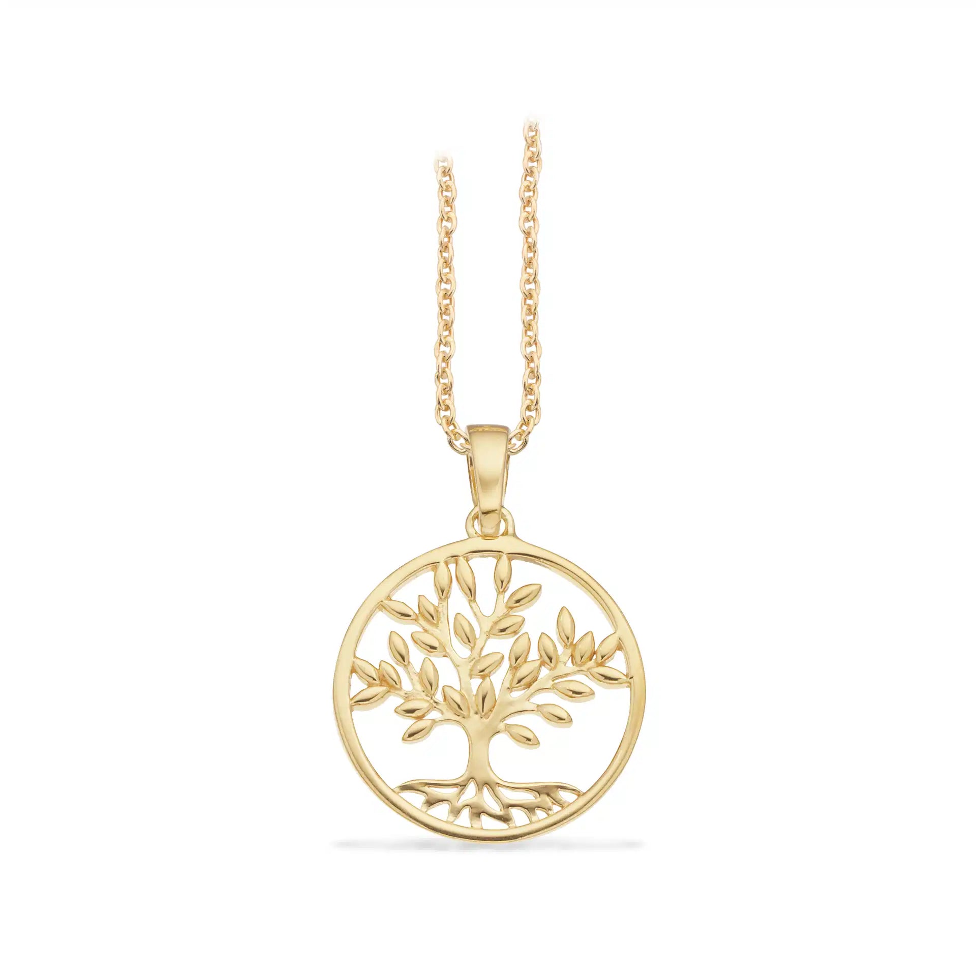 Et smukt forgyldt sølvvedhæng formet som Livets Træ, et symbol på styrke, vækst og forbindelse. Vedhænget leveres med en elegant matchende kæde – et tidløst og meningsfuldt smykke, perfekt som gave eller til personlig betydning.
